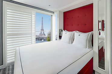Our French Balcony bedrooms include a French balcony with waterfront views, super comfy Savoir mattresses, built in Bluetooth speakers, flatscreen TVs, plenty of outlets with a variety of plugs (including USB ports), ample storage space and a safe.