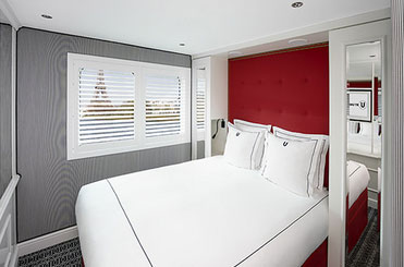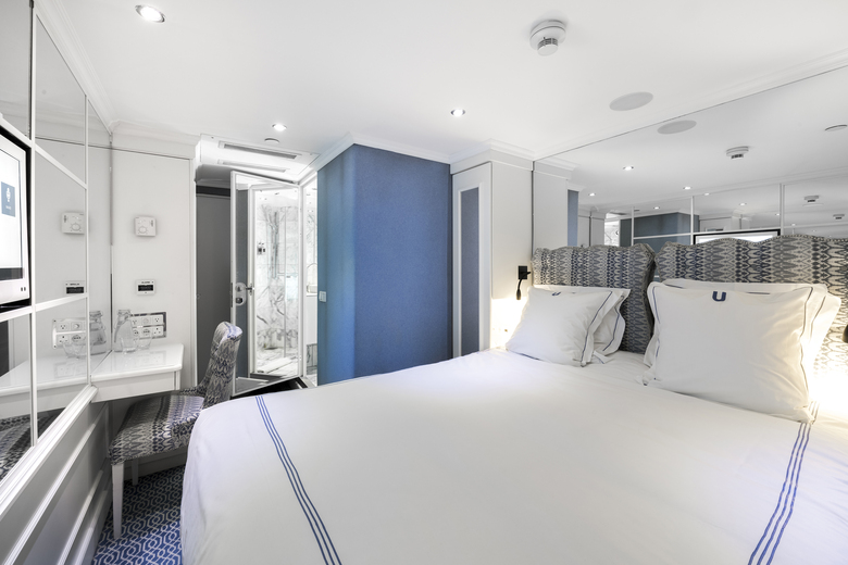 Our Classic bedrooms include waterfront views, super comfy Savoir mattresses, built-in Bluetooth speakers, flat-screen TVs, plenty of outlets with a variety of plugs (including USB ports), ample storage space and a safe.